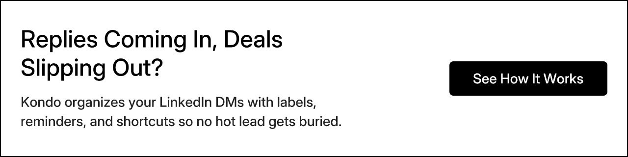 Yes, they are a powerful combination for mature outbound teams. Use HeyReach to generate a high volume of replies and conversations. Then, use Kondo as your command center to efficiently manage, track, and convert those inbound leads without feeling overwhelmed or letting deals slip through.