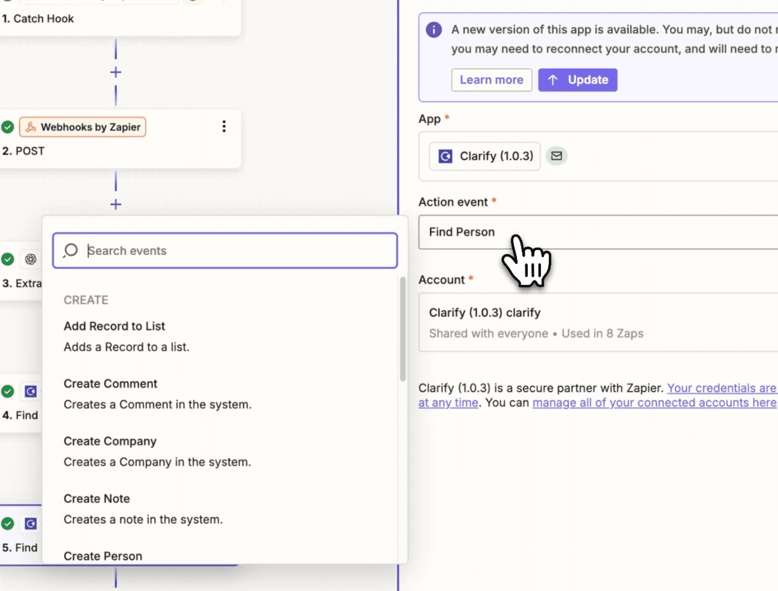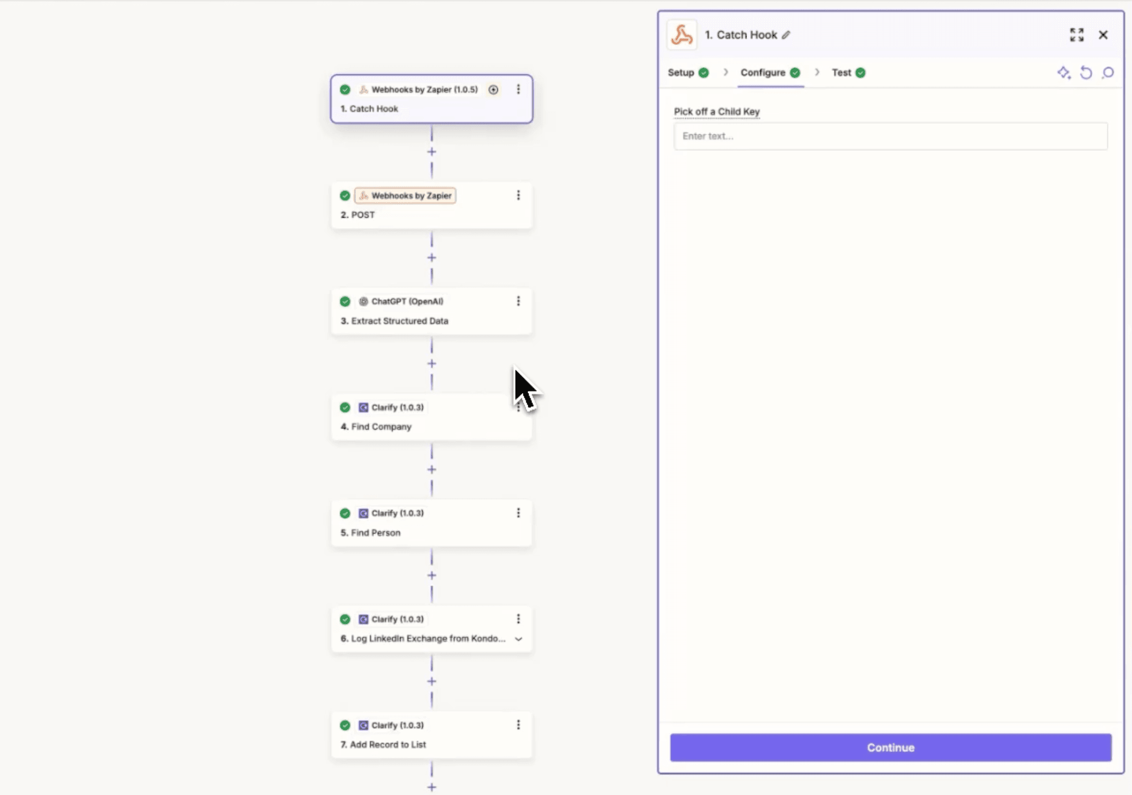 Your LinkedIn message triggers a full Zapier workflow that enriches the contact, finds their company, and logs everything in your CRM.